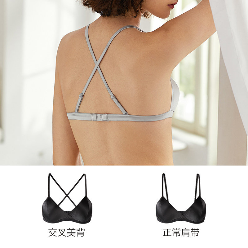 Golden three towers inside and outside mulberry silk comfortable beauty back without underwire thin French triangle cup sexy silk underwear bra