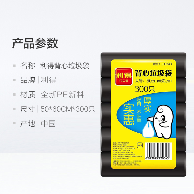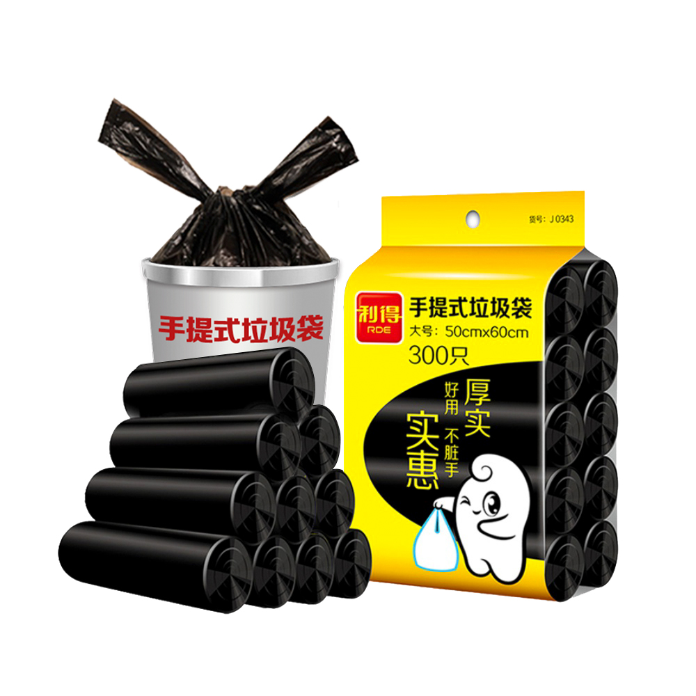Lide large garbage bag vest portable home kitchen thick black sorting 50 *60cm 300pcs*1 bag