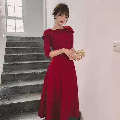 Toast clothing can usually wear 2021 new bridal wine red engagement dress cover arm female summer dress