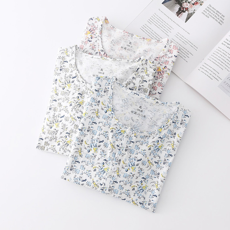 Middle-aged and elderly half-sleeved vest women's pure cotton large size button-down sweatshirt mother cotton short-sleeved home pajamas summer