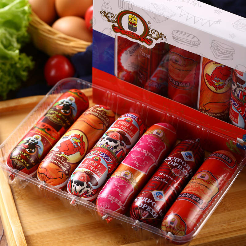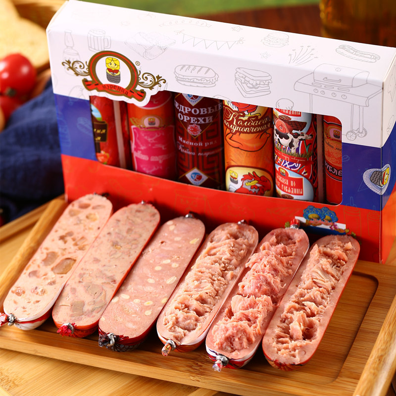 Russian sausage set 5 beef tendons Chicken Ready-to-eat meat sausage Ham barbecue Travel food