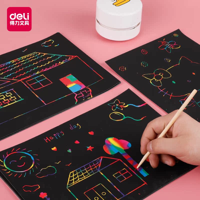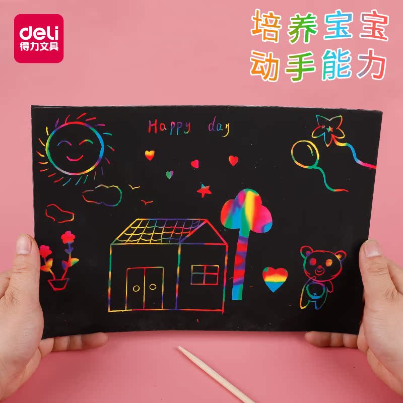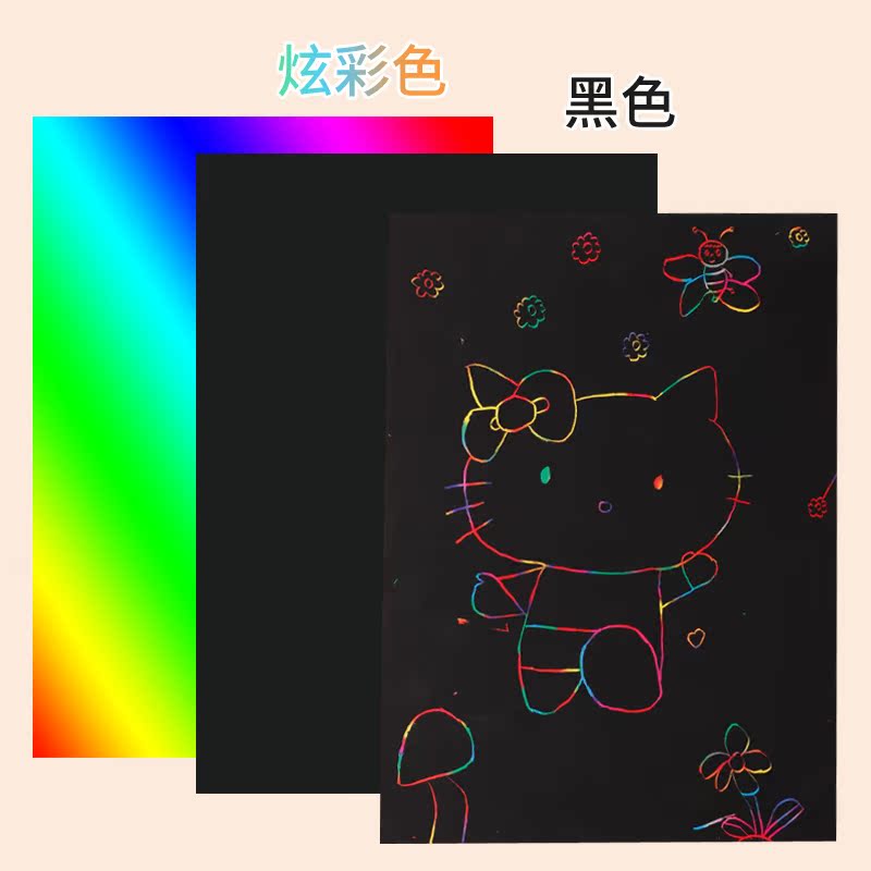 Able scrapbook Painted Paper Dazzling Children Colorful Scraped Wax Painting Hand-scraping Painting Nursery Black 8 Open Students Innocuous A4 Hand Graffiti Scraped Paper 50 Black Creative Hanging Painting Paper Adult Decompression