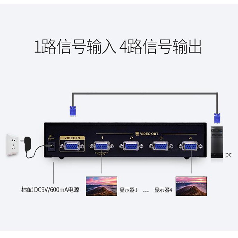 VS-5004 HD VGA allocator Iron Case 4 ports with original line 500MHZ TV video fraction frequency fraction