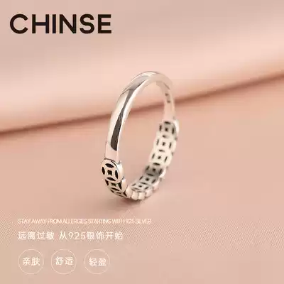 s925 sterling silver retro ring female fortune gathering money coin personality design simple niche opening transfer ring tide