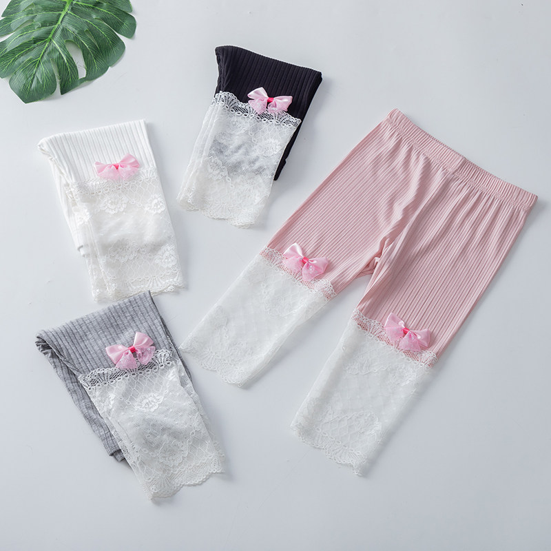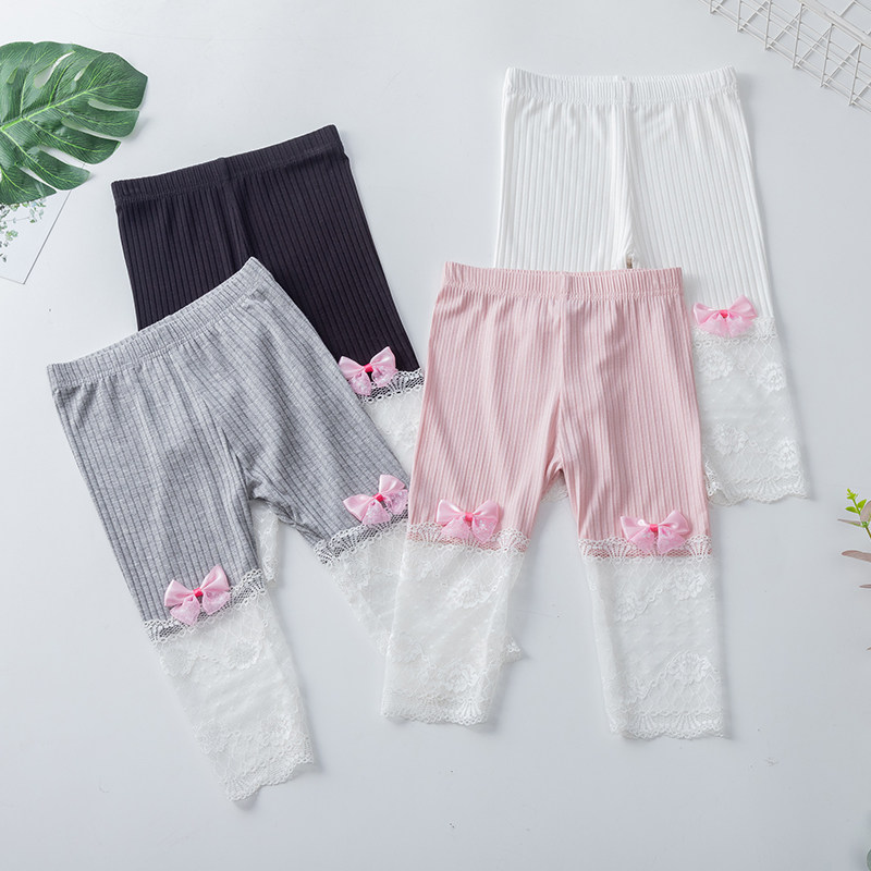 Girl's Seven Pants Summer Thin child Modele lace with underpants female baby Han version outside wearing 50% Pants