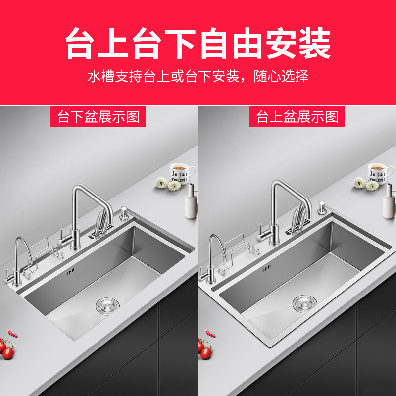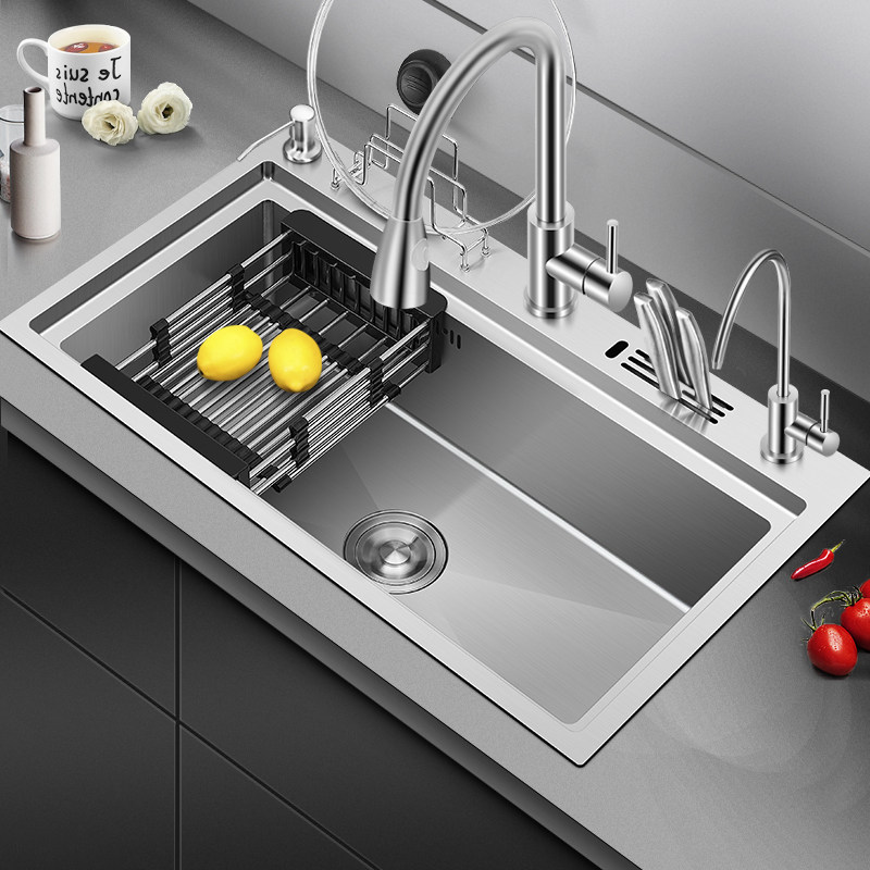 304 Stainless Steel Sink Single Sink Kitchen Wash Basin Dishwashing Basin Handmade Thicken Table Basin With Knife Holder Naughty Vegetable Basin