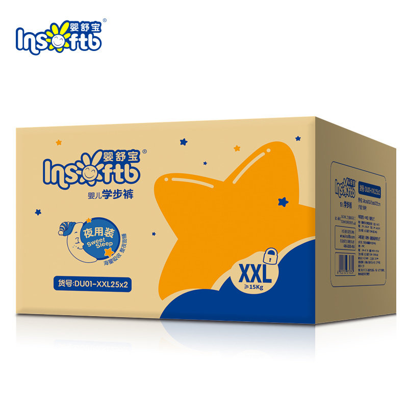 Infant Shubao night with pull-up pants with large water absorption XXL50 pieces of male and female baby diapers, dry and breathable box