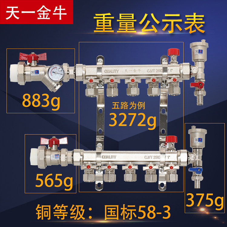 Sky One gold Bull Ground Heating water distributor Large flow Geothermal 4 Way 5 Road into Backwater Valve Tundiameter All-copper Home