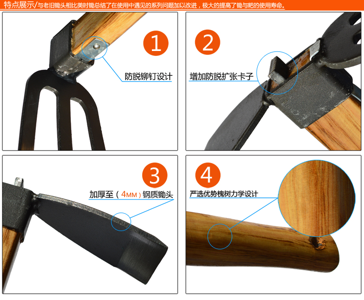 Double-headed hoe rake Ke Mu handle (champion) Double-headed hoe ash double-headed hoe rake Stainless steel Qinggang wood short hoe Ke Mu handle (Champion) short hoe ash short hoe