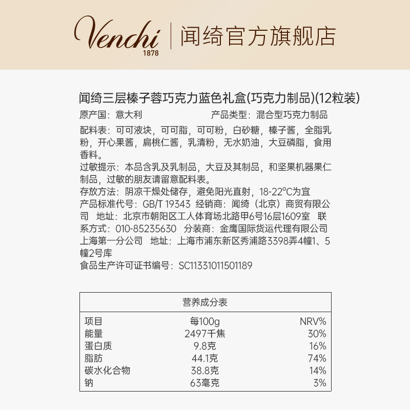 (20% discount for one piece) venchi wenqi imported three-layer hazelnut paste chocolate gift box office annual gift box