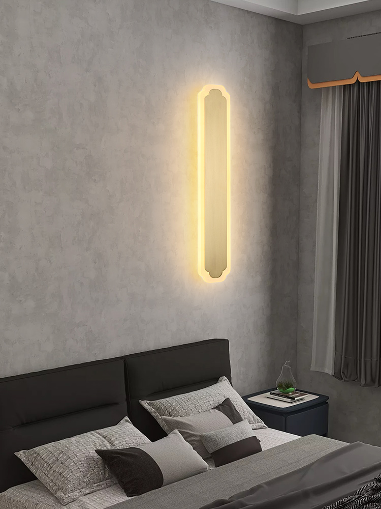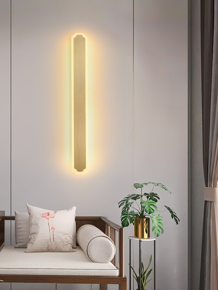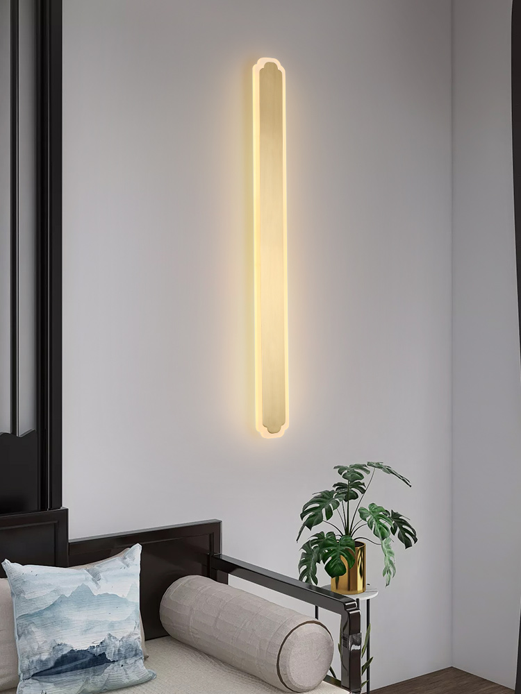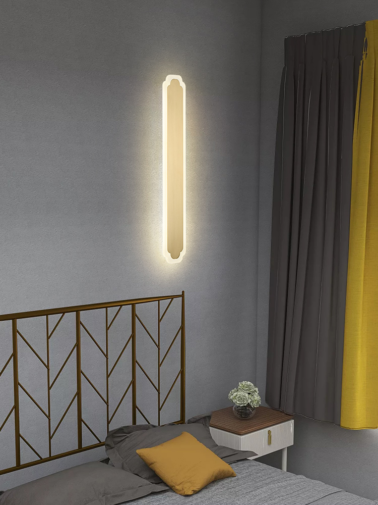 Minimalist long strip living room background wall lamp new Chinese style bedroom bedside lamp Nordic modern led net red full copper lamp