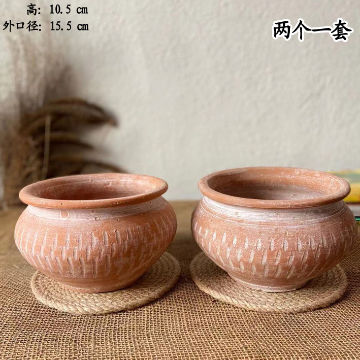 Nordic retro simple relief pottery basin New creative flower pot Red pottery fleshy green plant Breathable absorbent coarse pottery basin