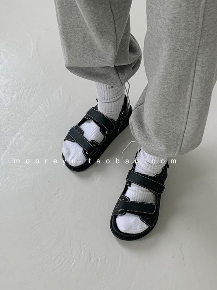 mooreyu women's shoes all-match college style personality Velcro buckle sandals female ins students flat open-toed shoes tide