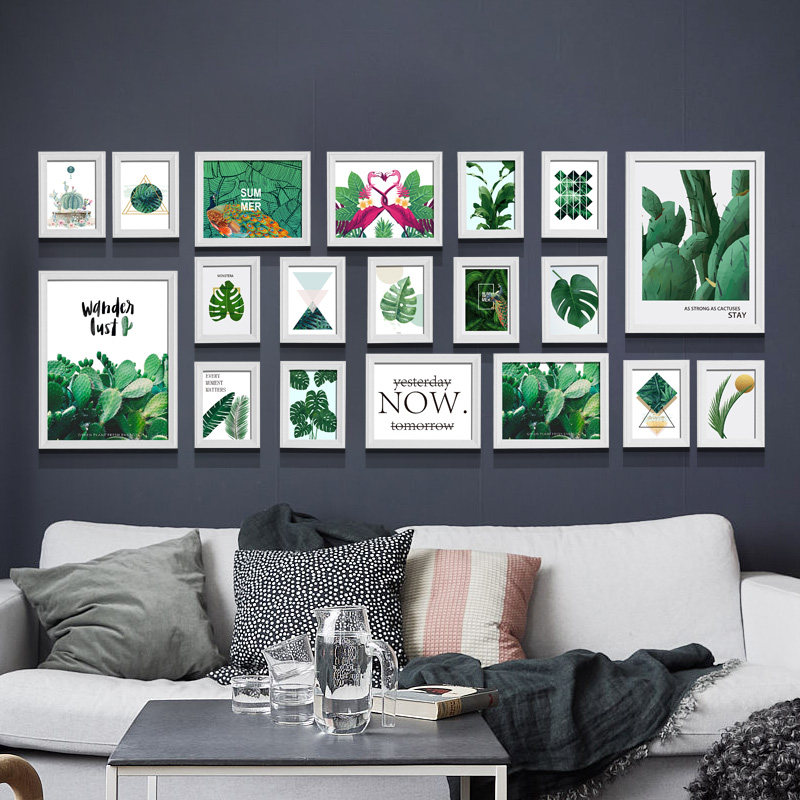 Persian Blue Nordic Wind Landscape Painting Elegant Pink Flower with Classic Black Industrial Wind Painting Core Chocolate color Black and white Architectural painting Core Original wood color Little Tiger expression Package Painted Core Crescent Moon