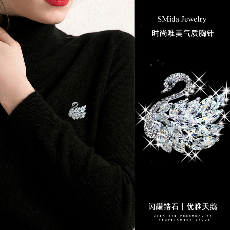 Swan brooch Female socialite temperament corsage clothes accessories Jacket suit decorations Korean fashion sweater pin