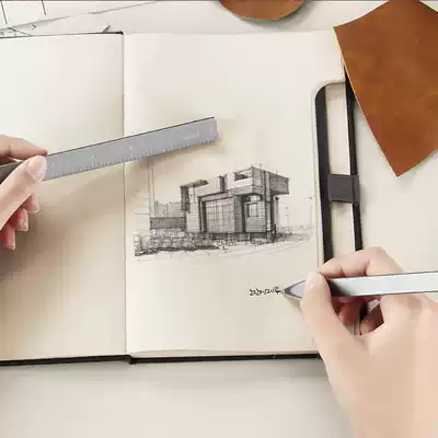 Two-in-one multifunctional signature pen Metal gel pen scale ruler dual-purpose professional drawing pen