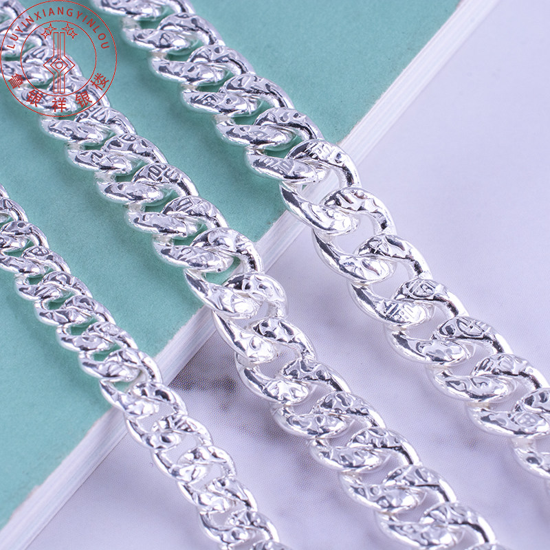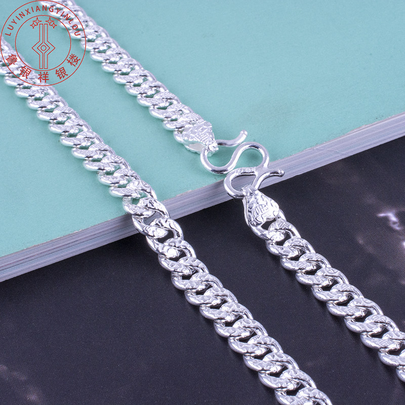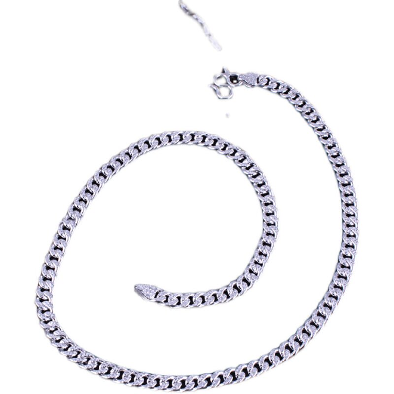 Foot silver 99 men's necklace sterling silver flat horse whip chain width thick long necklace male hipster Korean version simple men's Fuzi