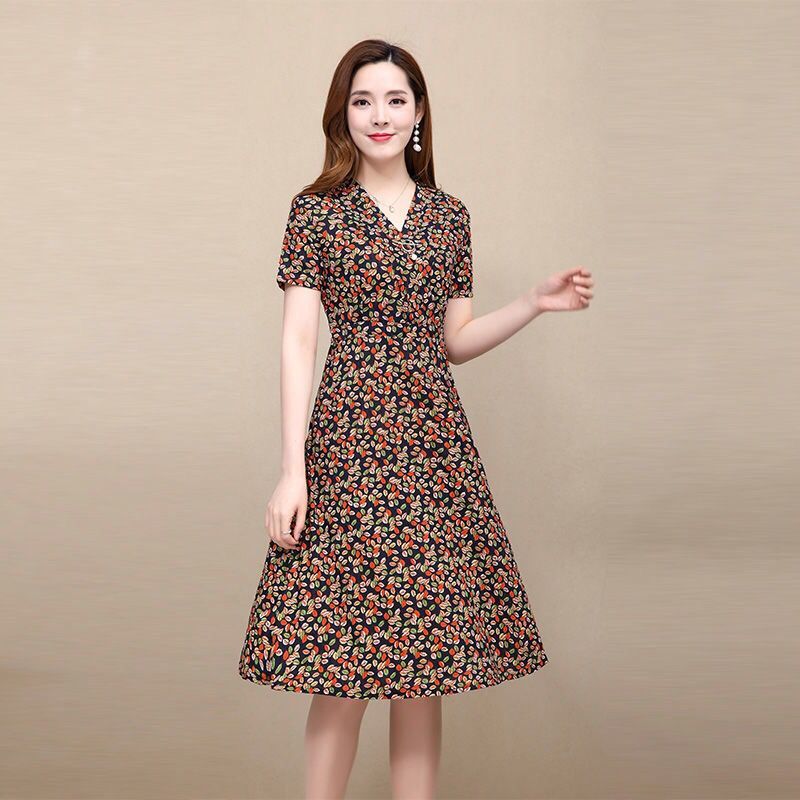 2021 spring and summer plus size women's floral dress for middle-aged and elderly mothers