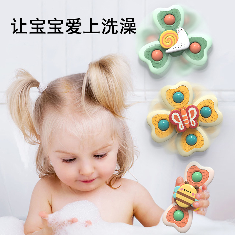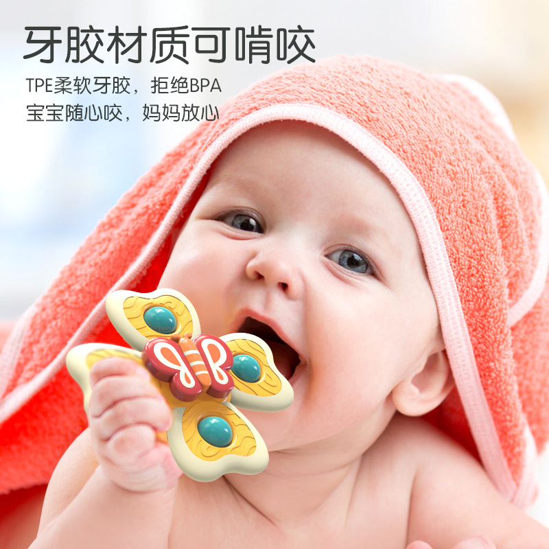 Children suction cup transfer to music toy fingertips rotating top baby baby dining table and chairs will turn flower cartoon