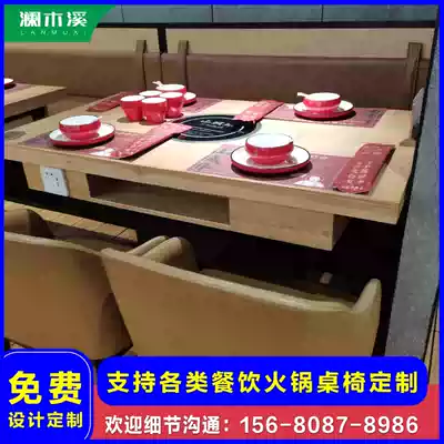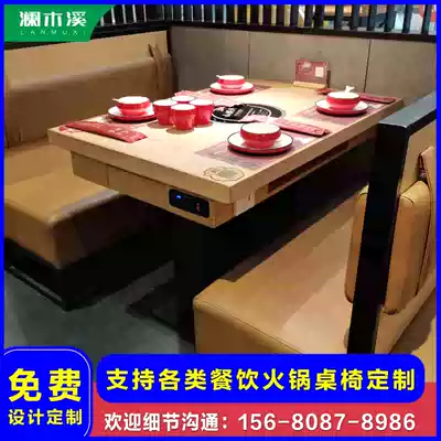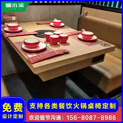 Hot pot table, commercial induction cooker, one table, solid wood marble, one, skewered barbecue barbecue table