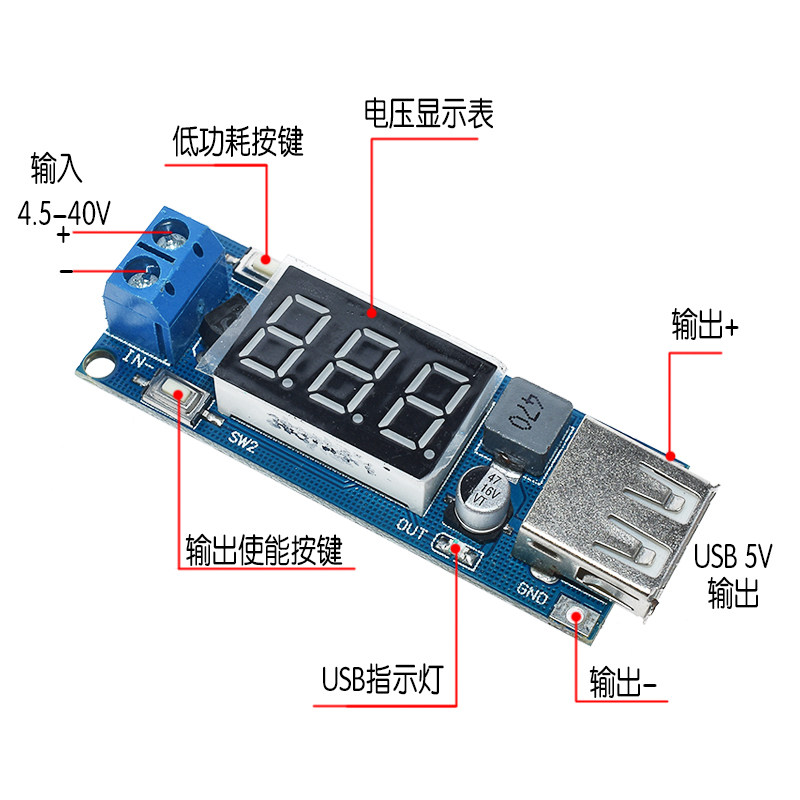 DC-DC step-down power module Universal USB charging mobile phone 6 5v12v~40v to 5v car voltmeter