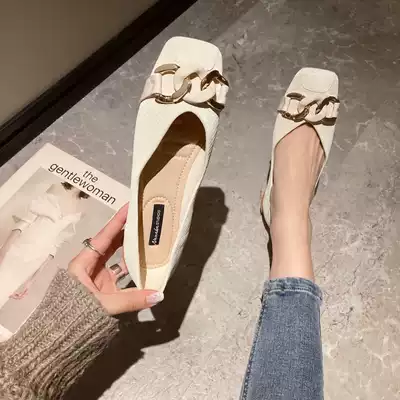 Small ckerwin Tide brand European fashion foreign style square head single female shallow mouth Bean Bean flat bottom scoop
