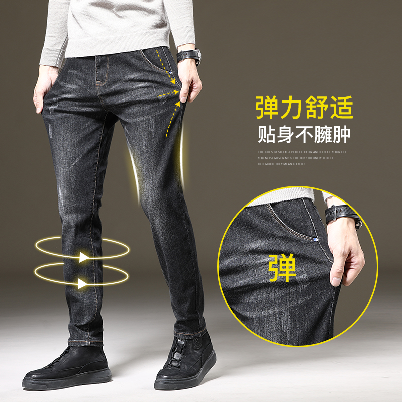 Men's jeans Summer slim fit stretch pants male trend 100 hitch a small straight cylinder casual denim Long pants male