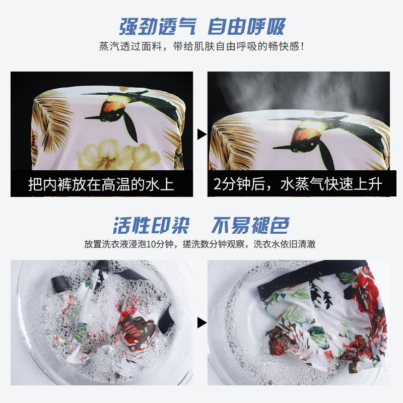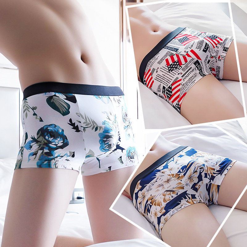 Ice Silk Briefs Breathable Mid-Waist Four-corner Underpants Sexy Printed Briefs FOUR STRIPS MEN'S UNDERWEAR