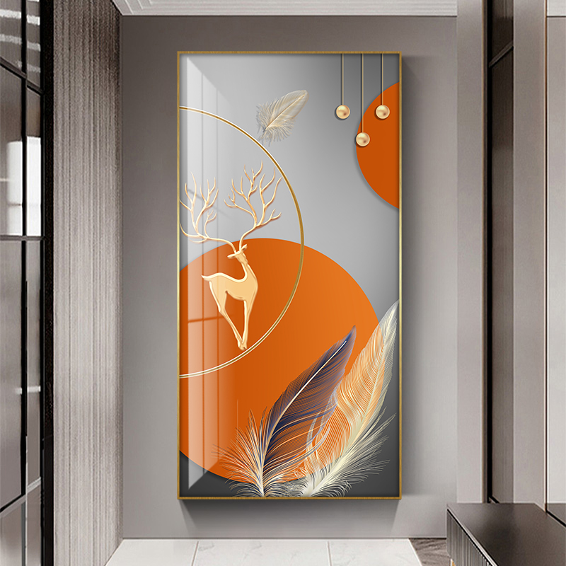 Nordic orange porch decorative painting modern minimalist geometric deer vertical mural living room entry corridor aisle hanging painting