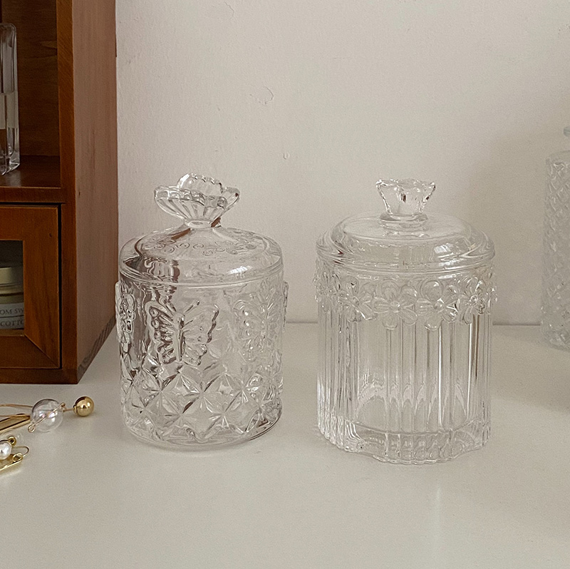 ins retro style relief glass storage tank table top decorative swing piece makeup cotton sign with lid jar containing box-Taobao