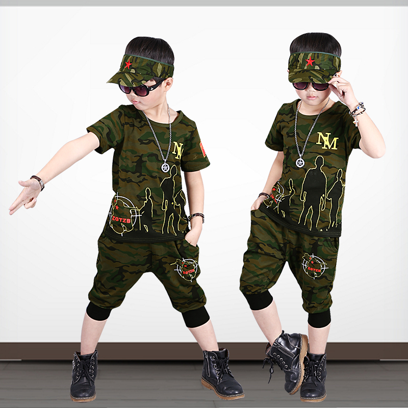 Boy Clothing Boy Summer Clothing Suit 2020 Children's sports camouflak clothes pure cotton CUHK Tong Han version handsome and summer style