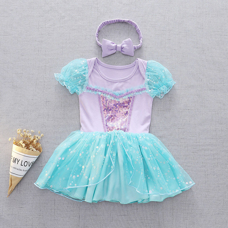 Female Bao infant Aisha Anna Mei Man Fish Cinderella White Snow Princess Hailey Cotton Climbing Clothes for the first year of even a dress