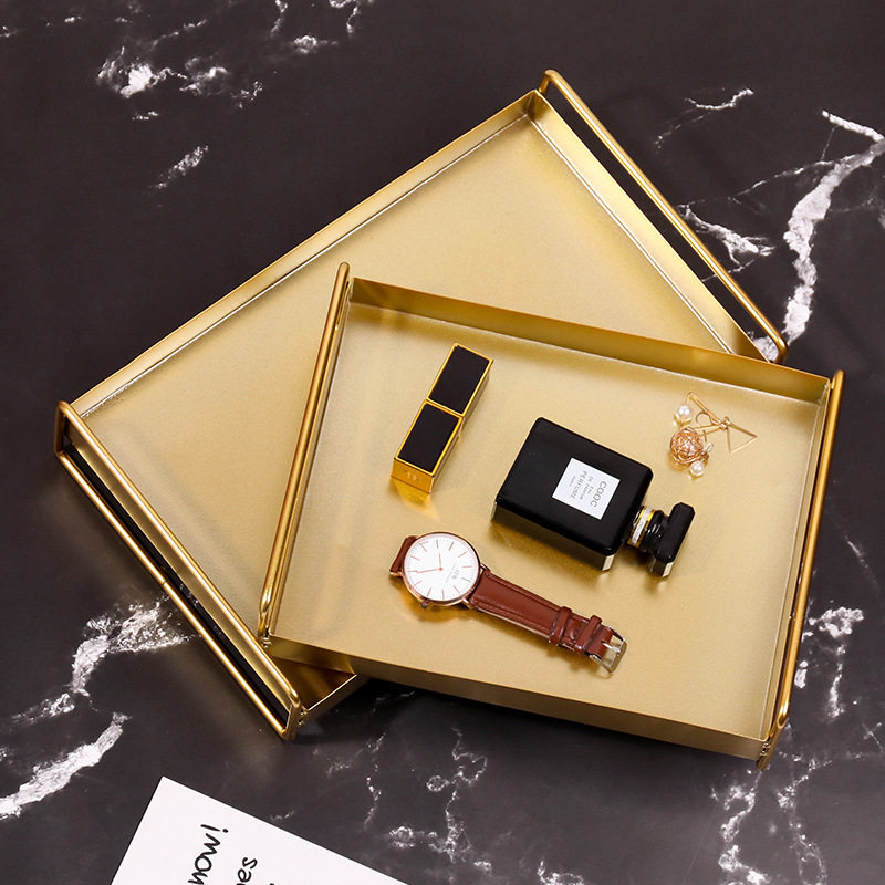 Nordic style household tea set water cup tray rectangular simple metal desktop makeup jewelry storage tray