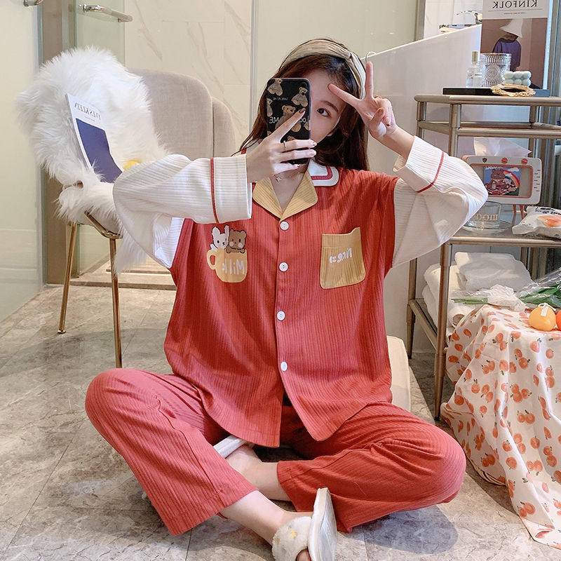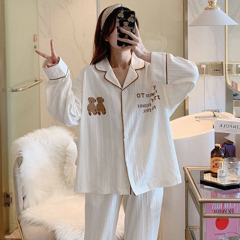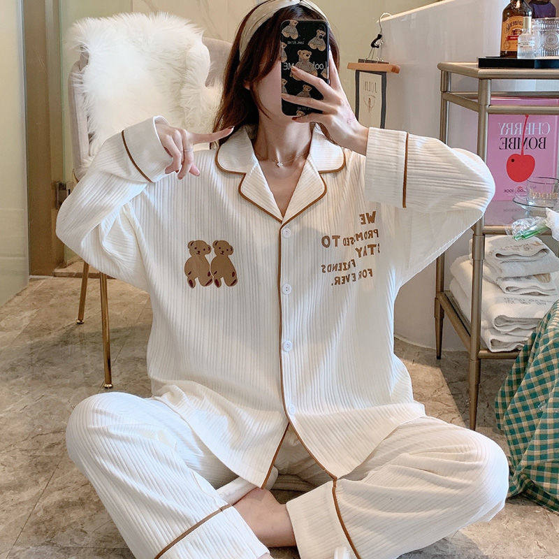 Sleepwear Woman Long Sleeve Pure Cotton Spring Autumn Style Lady Casual Thin family home Autumn Winter Korean Edition Two Home Suits