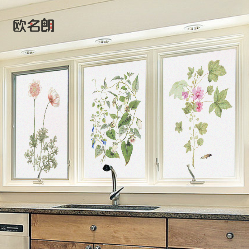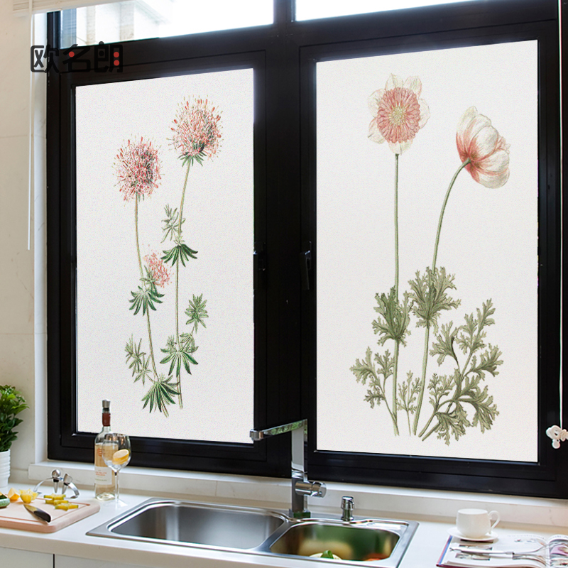American Countryside Kitchen Windows Glass Stickers Decoration Fields Garden Flowers Bedroom Dining Hall Septa cut door Cling Film Window Flower paper