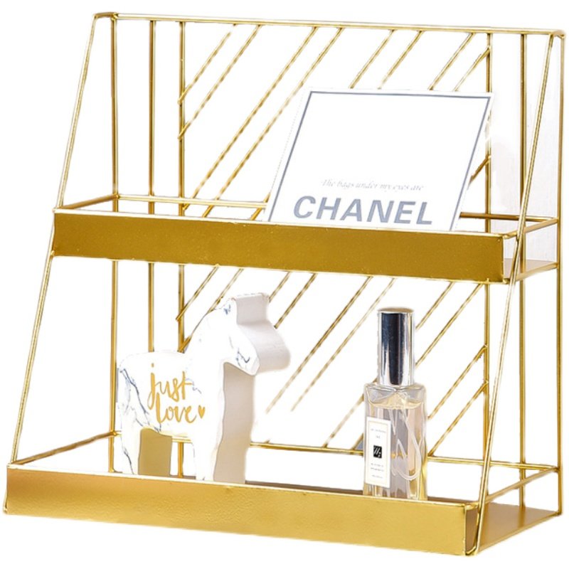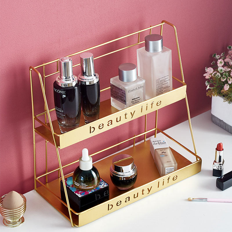 Nordic wrought iron desktop double-layer rack cosmetic storage rack hanging wall-free punching dormitory powder room wall pendant