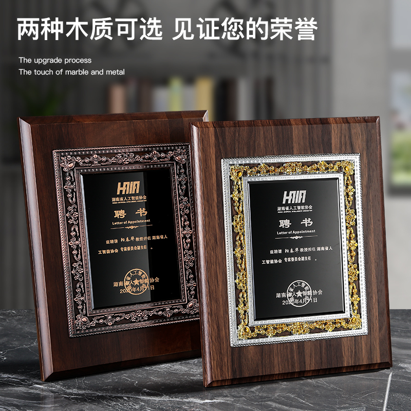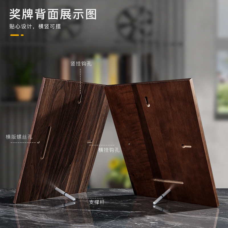Black Hupeach Wood Solid Wood Engraving Flower Frame Medal for Company Enterprise Chamber of Commerce Acting Authorized Card Honorary Certificate