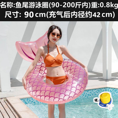 Mermaid children's sitting ring Mermaid children's slit swimming ring Mermaid adult swimming ring Blue mermaid adult swimming ring Pink transparent duck children's swimming ring Backrest Polo swimming ring 90# (suitable for adults