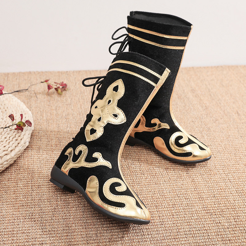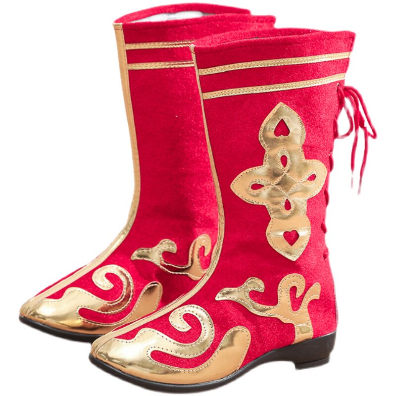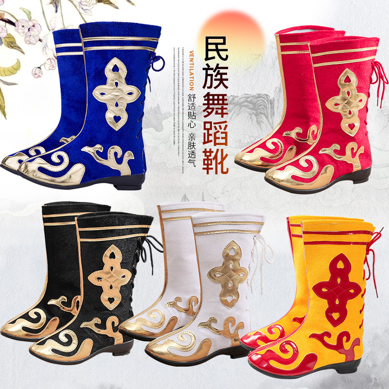 Adult People Dance Performance Boots for Men and Women Children and Children in Xinjiang Mongolian Qiang Tibetan Dance Shoe Long-barrel Performance Shoe