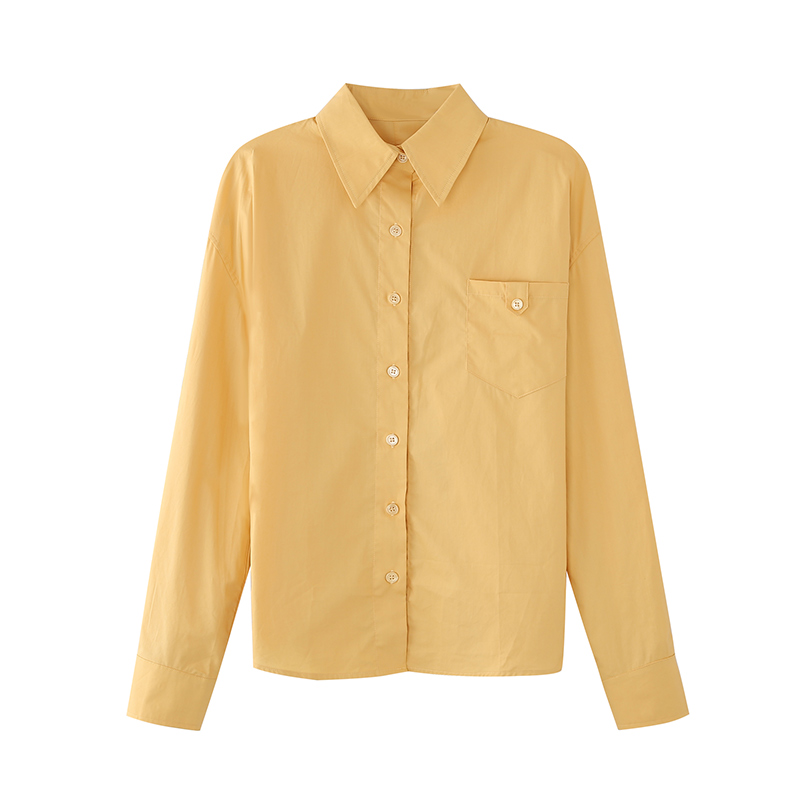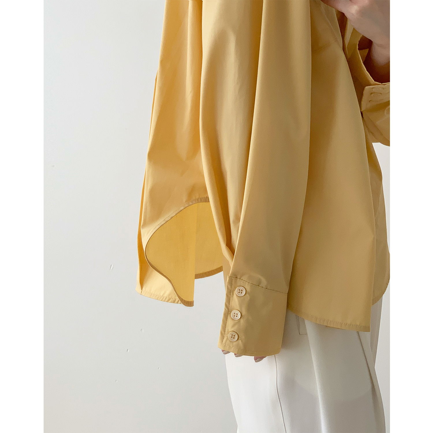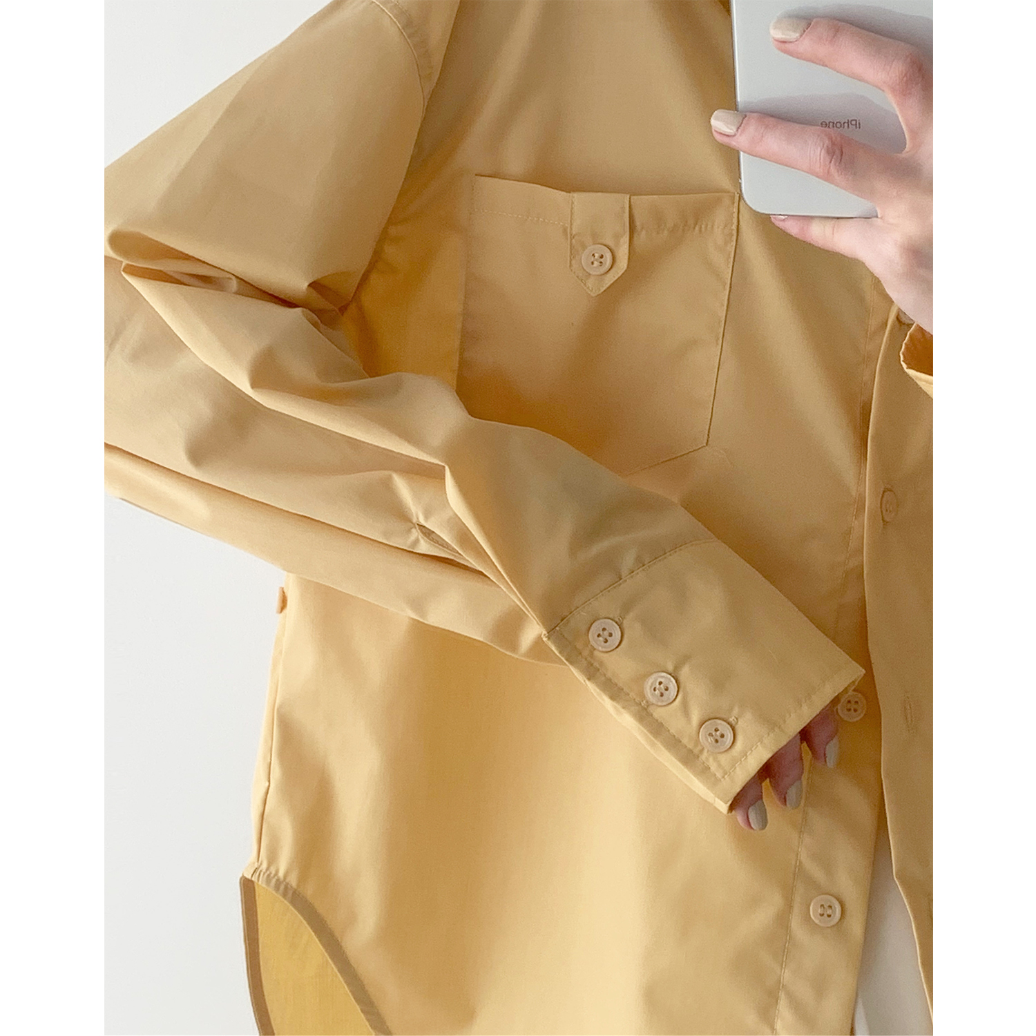 Salt-based shirt woman 2022 new design sensation Han version yellow loose irregular long sleeve blouse shirt woman stack wearing