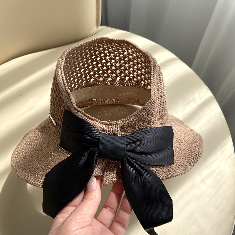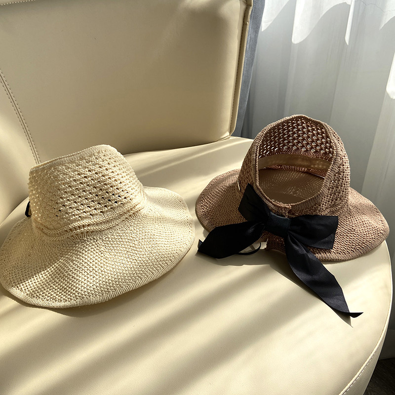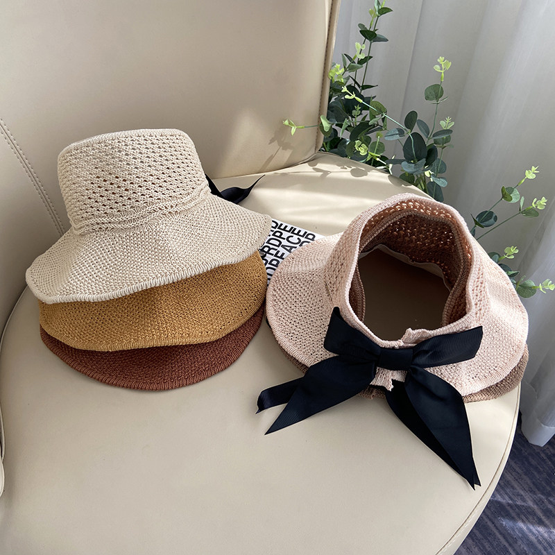 Bow-knot streamer children's empty top hat parent-child straw hat girl summer big brim sunscreen baby thin cool hat