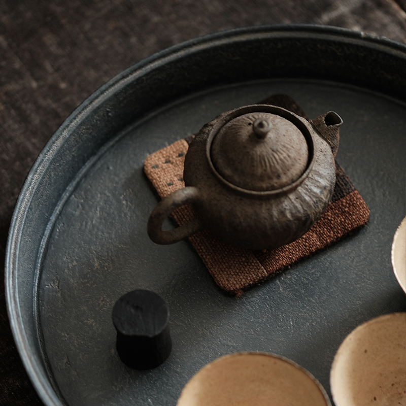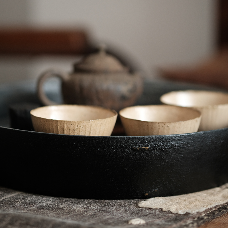 Craftsman tea tray Tray storage box Cherry wood whole wood hand-chiseled orphan Large lacquer round tea box