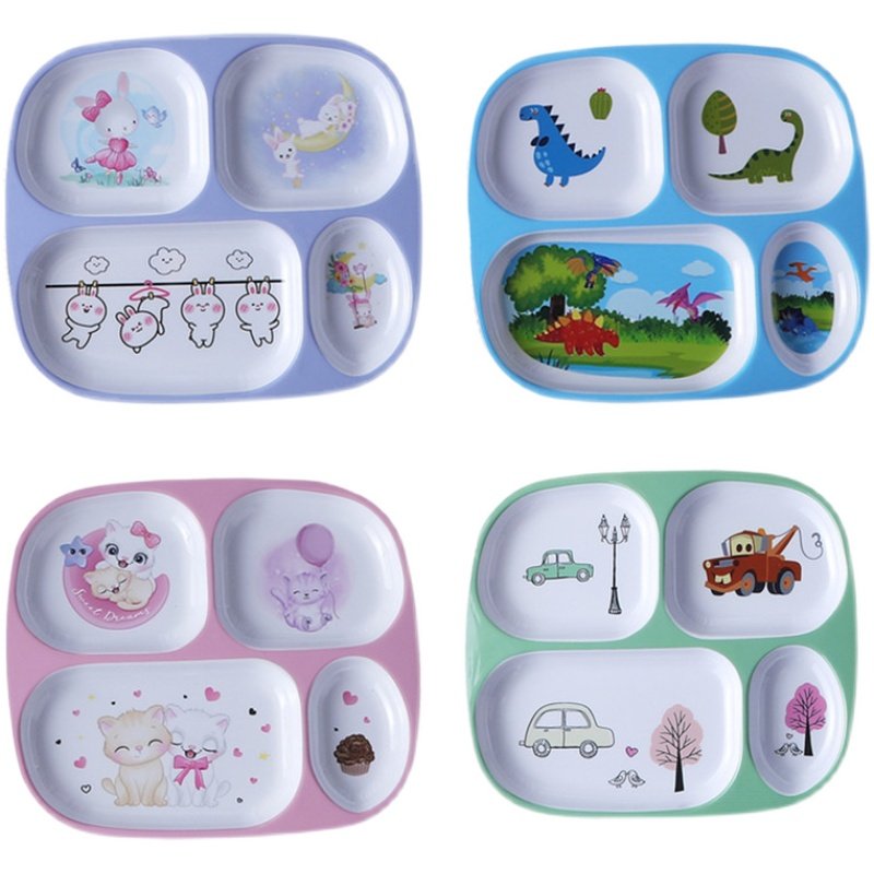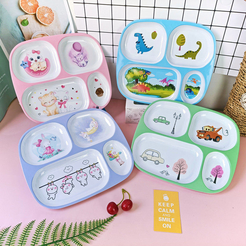 Dinosaur four-grid plate pink cat four-grid plate purple rabbit four-grid plate green car four-grid plate dinosaur four-grid plate spoon pink cat four-grid plate spoon purple rabbit four-grid plate spoon green car four-grid plate spoon