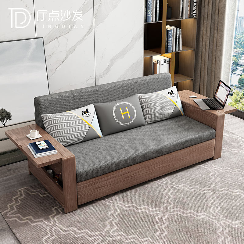 Solid wood sofa bed dual-purpose foldable storage Chinese-style small apartment multi-functional modern double living room fabric sofa