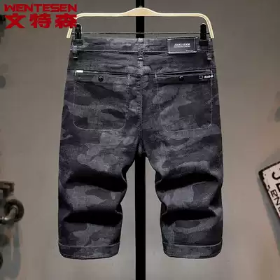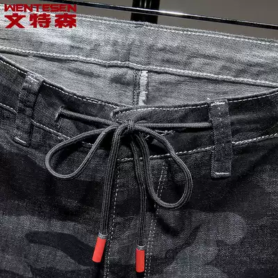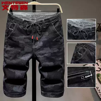 Black camouflage drawstring jeans men Korean fashion casual five-point pants summer 2021 new short pants men's tide