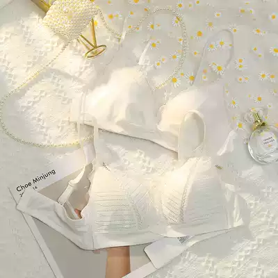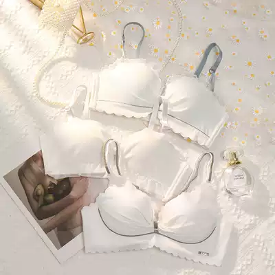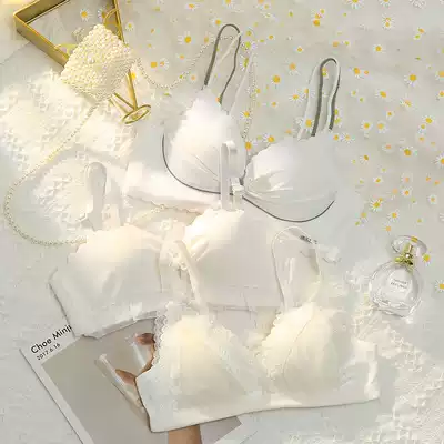 White underwear women's small breasts gather without steel ring underwear set summer thin girl collection anti-sagging bra
