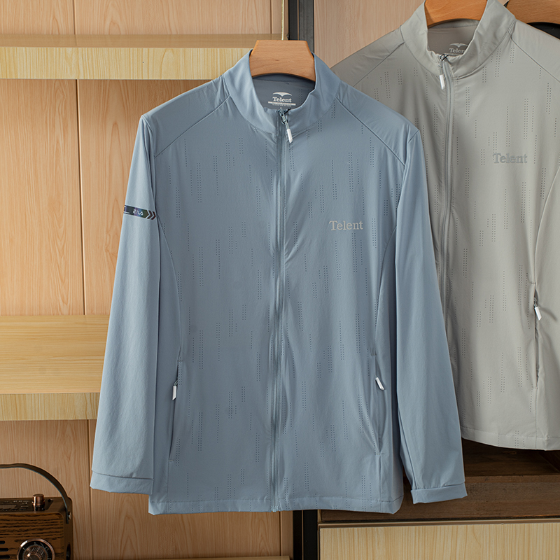 Company channel with anti-counterfeiting men's ultra-comfortable custom-woven milk silk elastic mesh air-conditioning stand-up collar sunscreen skin clothing