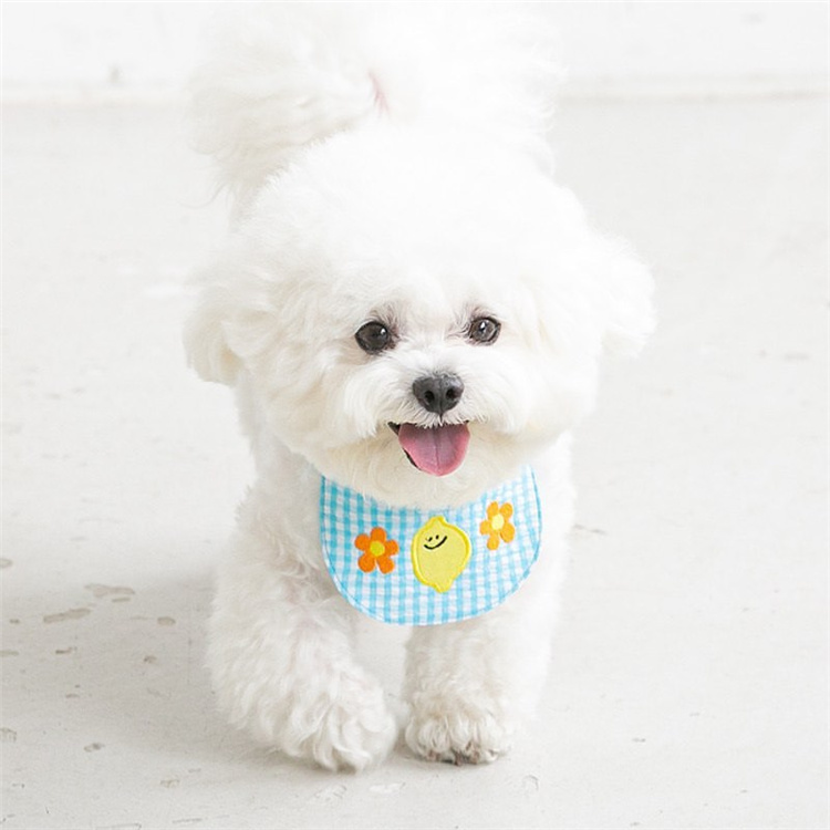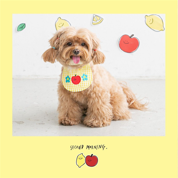 ins pet small walled pocket round mouth cute Korean family plaid embroidered reworking style dog small neckline cat kitty small dog-Taobao