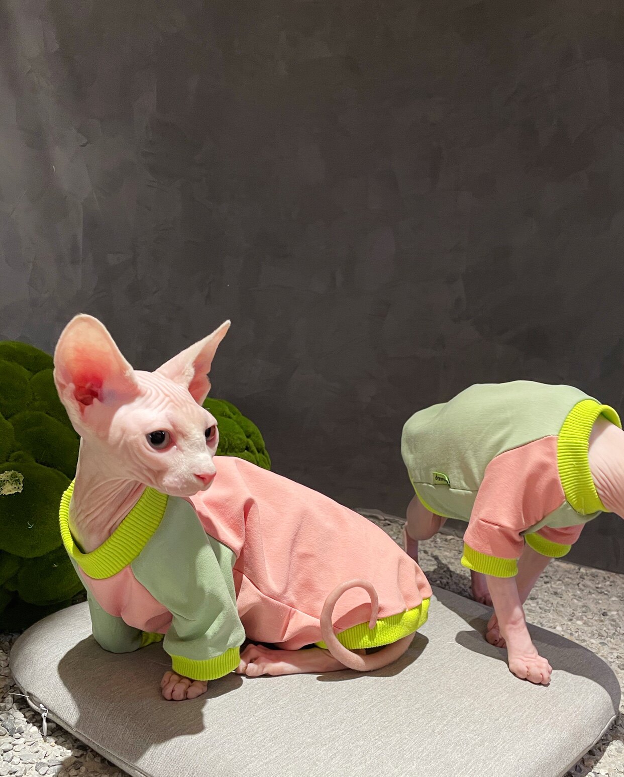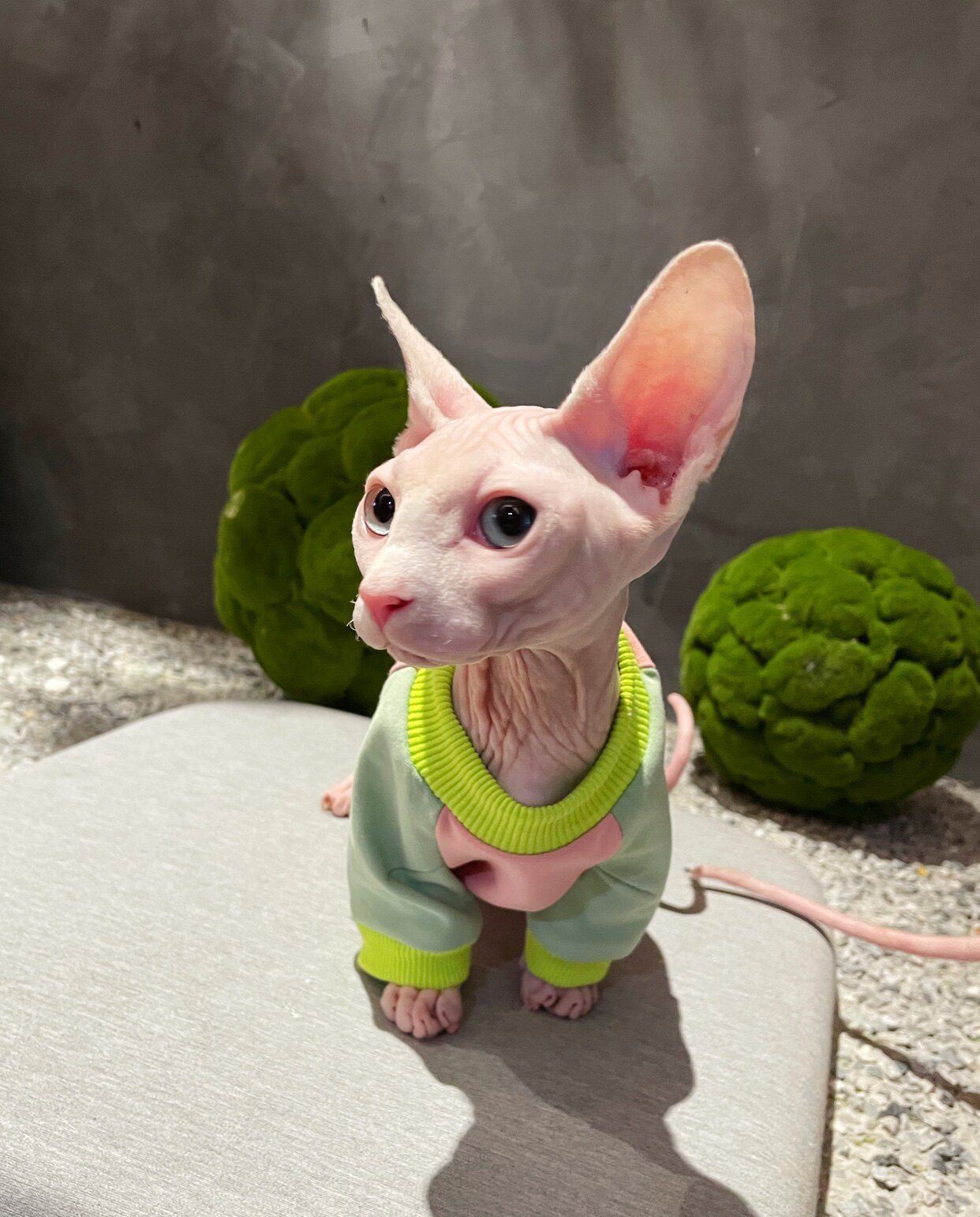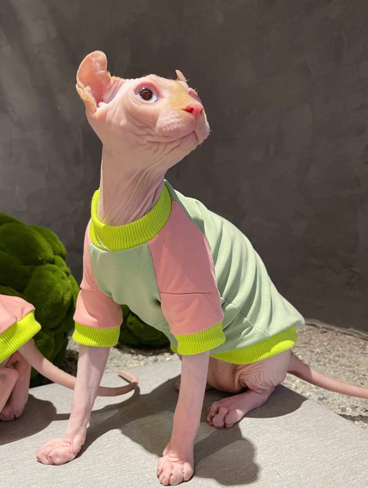 Cream is a hairless cat Spinx dwarf Gevin Koenis new cotton elastic pet clothes
