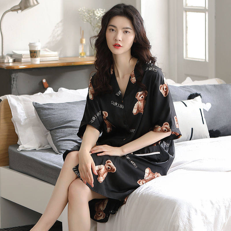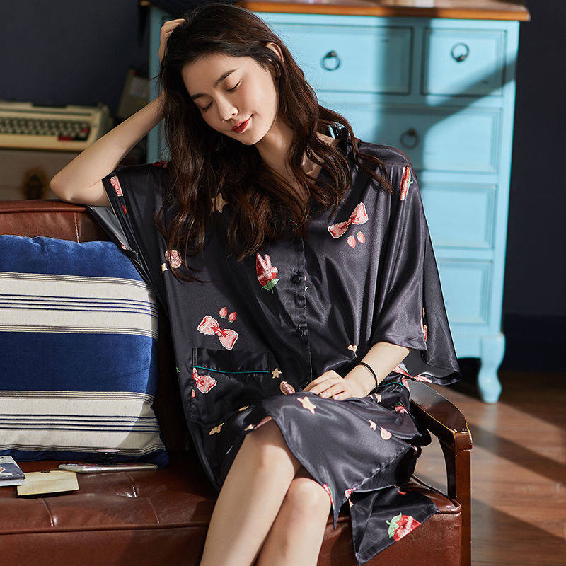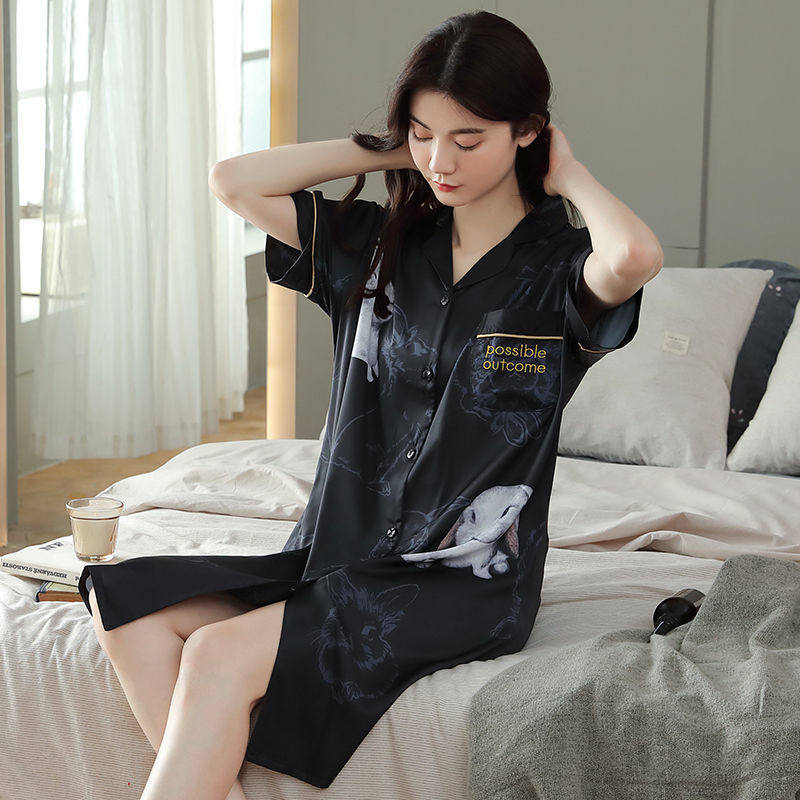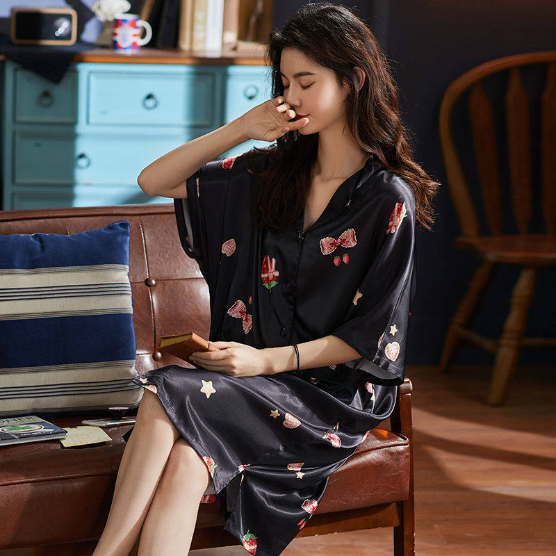 2021 New Summer Thin style Sexy Silk Pyjamas Ice Silk Sleeping Dress Women's Summer Emulation Silk Spring Autumn Home Clothes